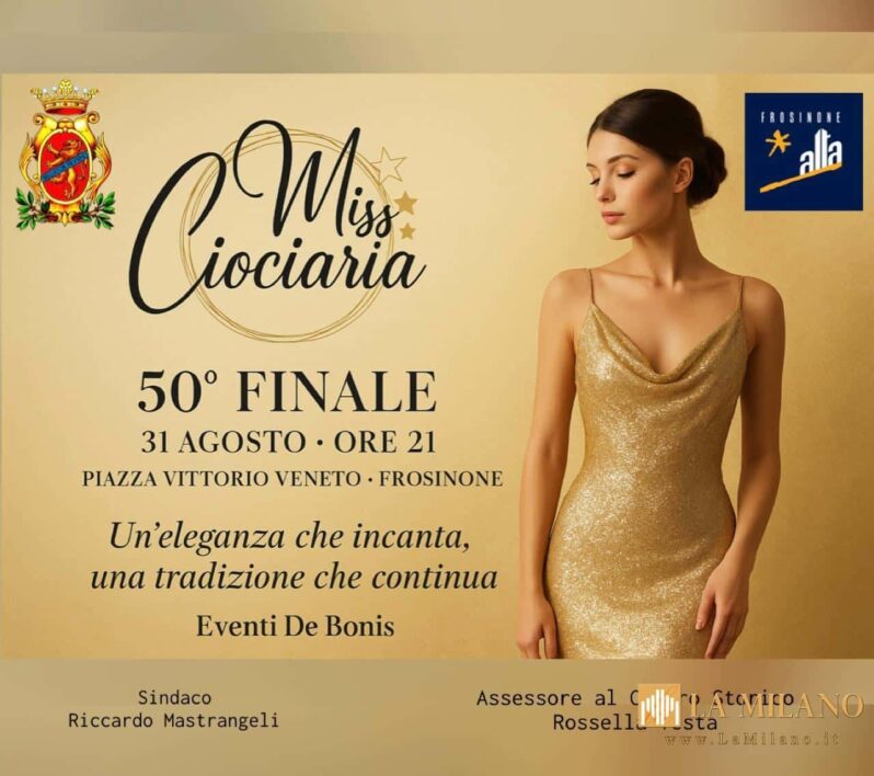 Frosinone, tutto pronto per la finale di Miss Ciociaria 2025: un’edizione storica per i 50 anni della kermesse Domenica 31 agosto alle ore 21 in Piazza Vittorio Veneto a Frosinone si terrà la finale di Miss Ciociaria 2025 & Miss e Mister Ciociaria baby, kermesse giunta alla 50ª edizione. Un traguardo storico per una manifestazione […]